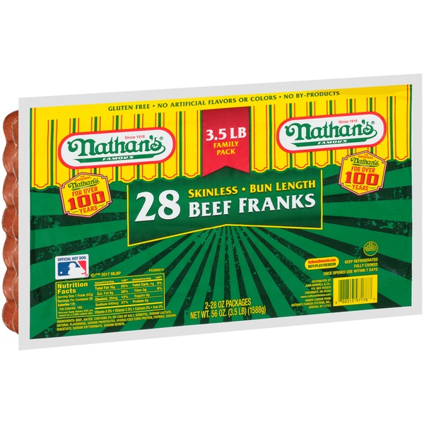 Nathan's All Beef Skinless Franks 3.5 lbs